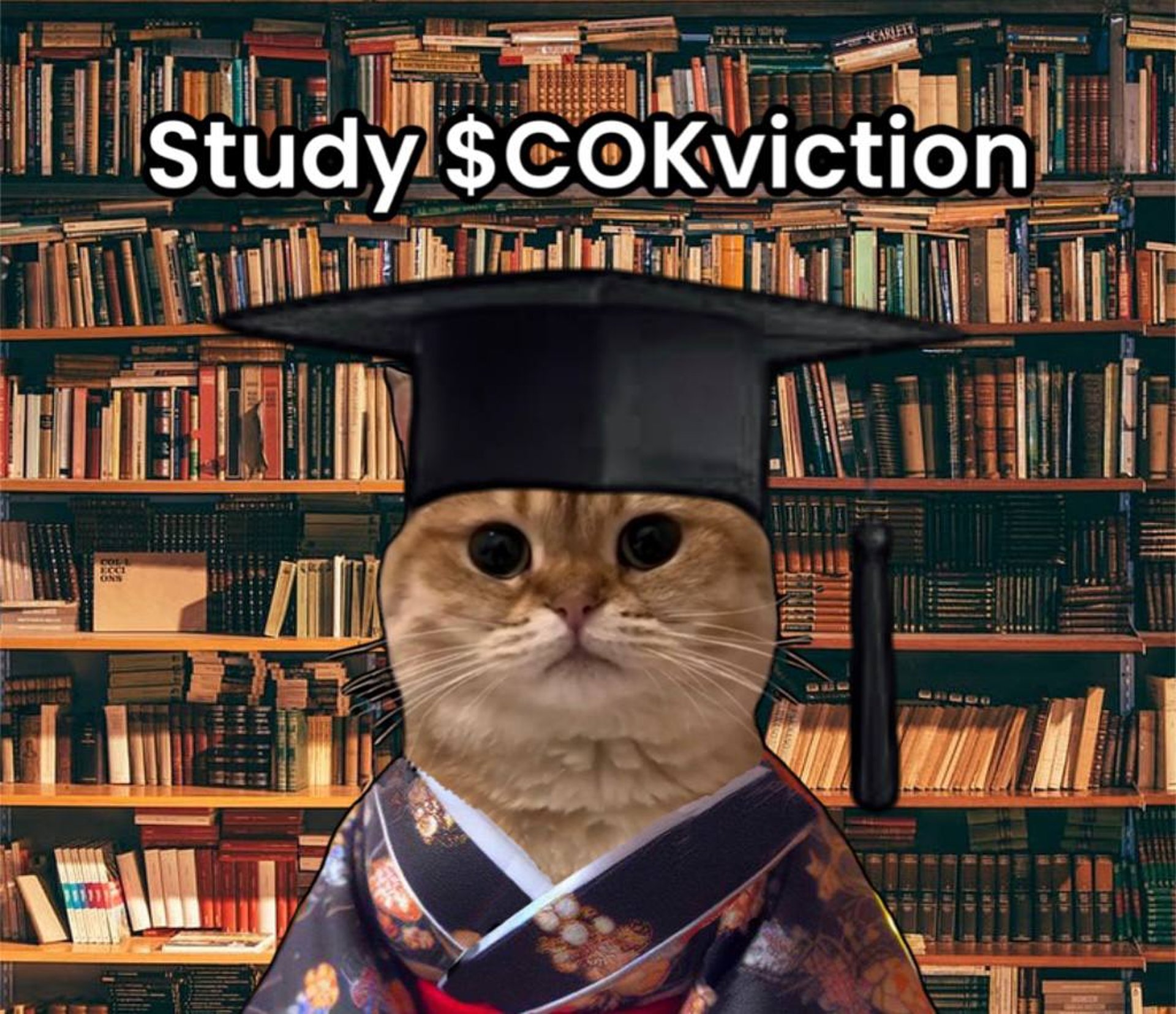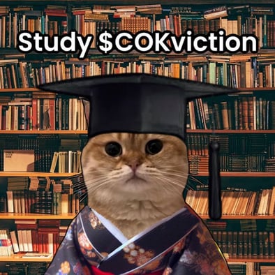 COK ISN'T SIMPLY A CAT IN A KIMONO; IT'S A SYMBOL OF OVERCOMING OPPRESSION IN A DOG EAT CAT WORLD, REPRESENTING FUTURE-FORWARD ON-CHAIN CAT TRANSACTIONS, A GUIDING LIGHT FOR THE FELINE. AS THE SIBLING OF WIF, COK EMBODIES THE AMBITION TO BECOME AN AMBASSADOR FOR ALL CAT LOVING INVESTORS, WORKING TIRELESSLY TO BECOME THE FIRST BILLION-DOLLAR CAT, EMBRACING THE CORE VALUES OF CAT CULTURE, HONOR, DIGNITY AND WORK ETHOS TO STAND SIDE BY SIDE ITS SIBLING AT THE PEAK OF MEMECOIN PERFORMANCE. THE FUTURE BELONGS TO THOSE WHO ADOPT ADVANCEMENTS LIKE COK, SURPASSING SET LIMITATIONS AND FORGING A NEW PATH IN INTERSPECIES MEMECOIN FINANCE AND DEGEN TECHNOLOGY.
